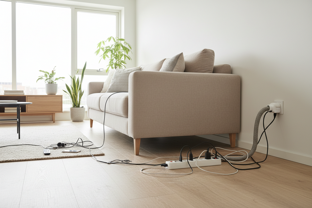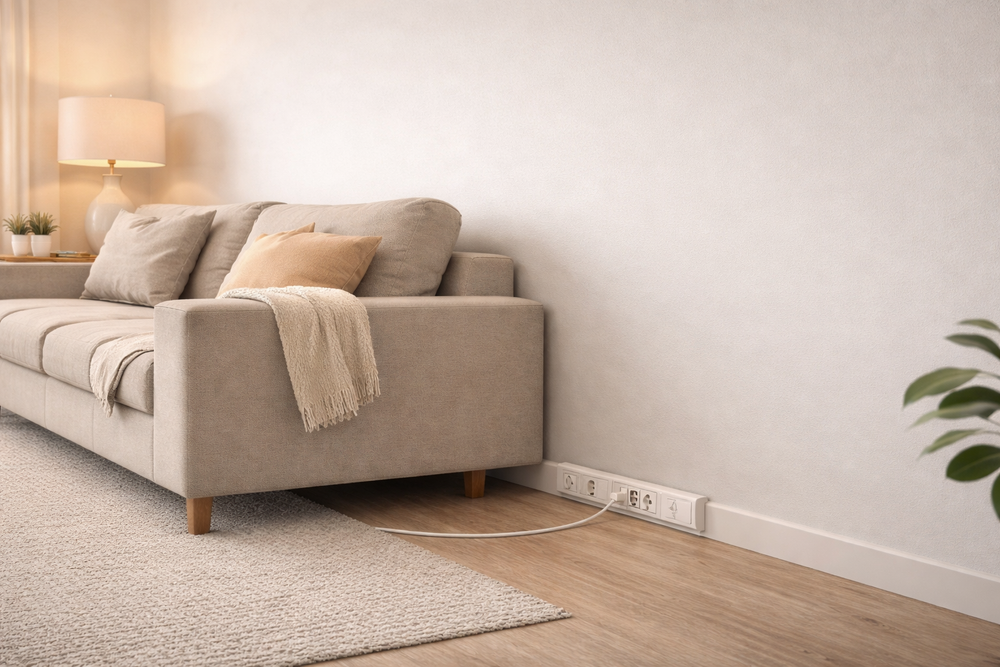 AlignHome’s ultra-slim 180° rotating extender lets furniture sit flush while giving you flexible power access.